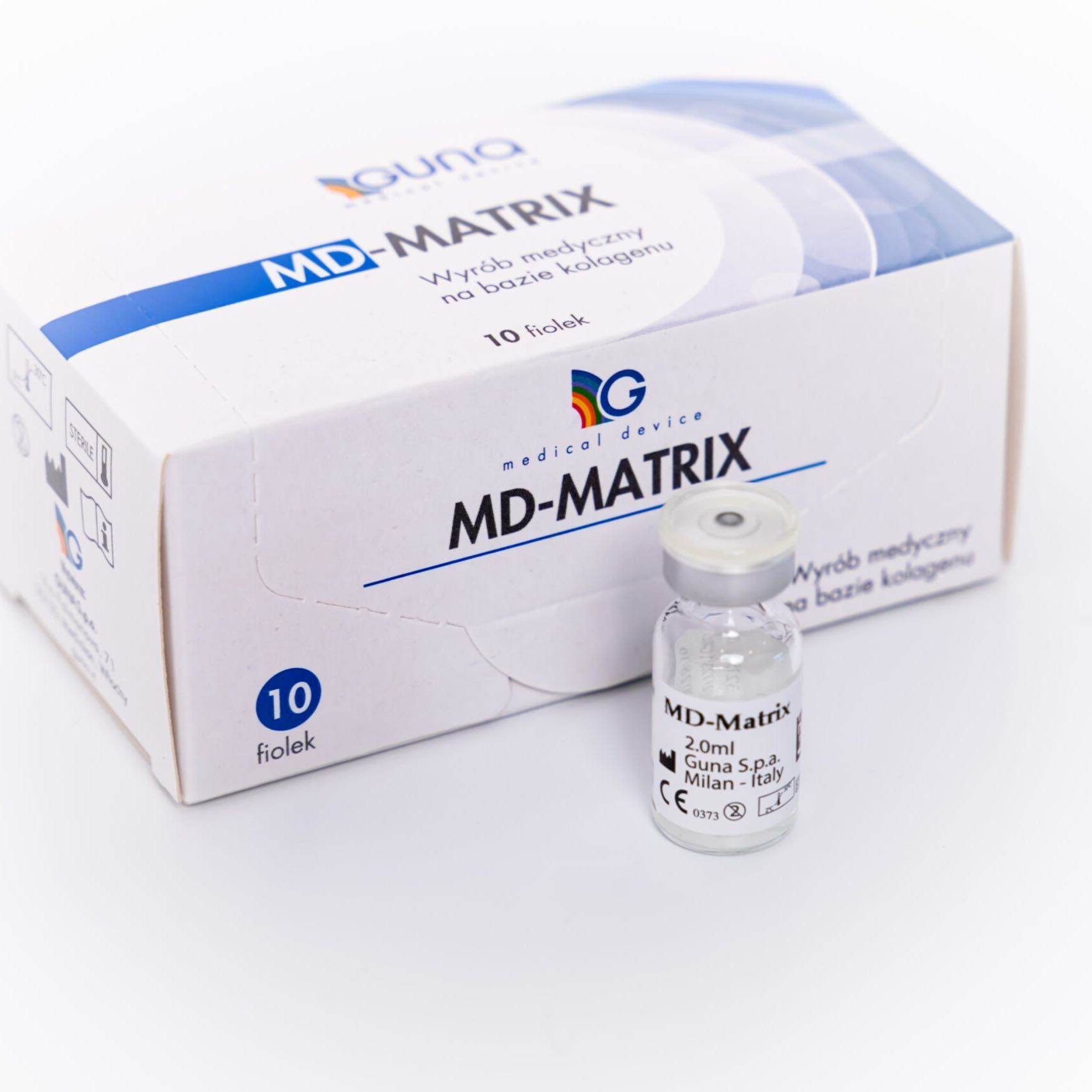 Preparat MD-MATRIX zawiera kolagen typu I, kwas cytrynowy, wit. B3.